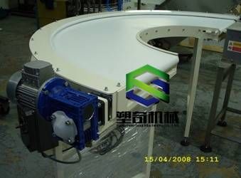 转弯皮带输送机扇形皮带加装专用的防跑偏滚轮 (轴承外加聚甲醛POM)或者在输送带的外侧高频焊接导向筋使输送带运行在专用的导轨中,辊筒采用专用的锥型包胶辊筒,广泛应用在食品、饮料、电子、烟草等行业,我们可以选用较小直径的滚筒,使转角连接更加方便,完美的解决过渡问题。